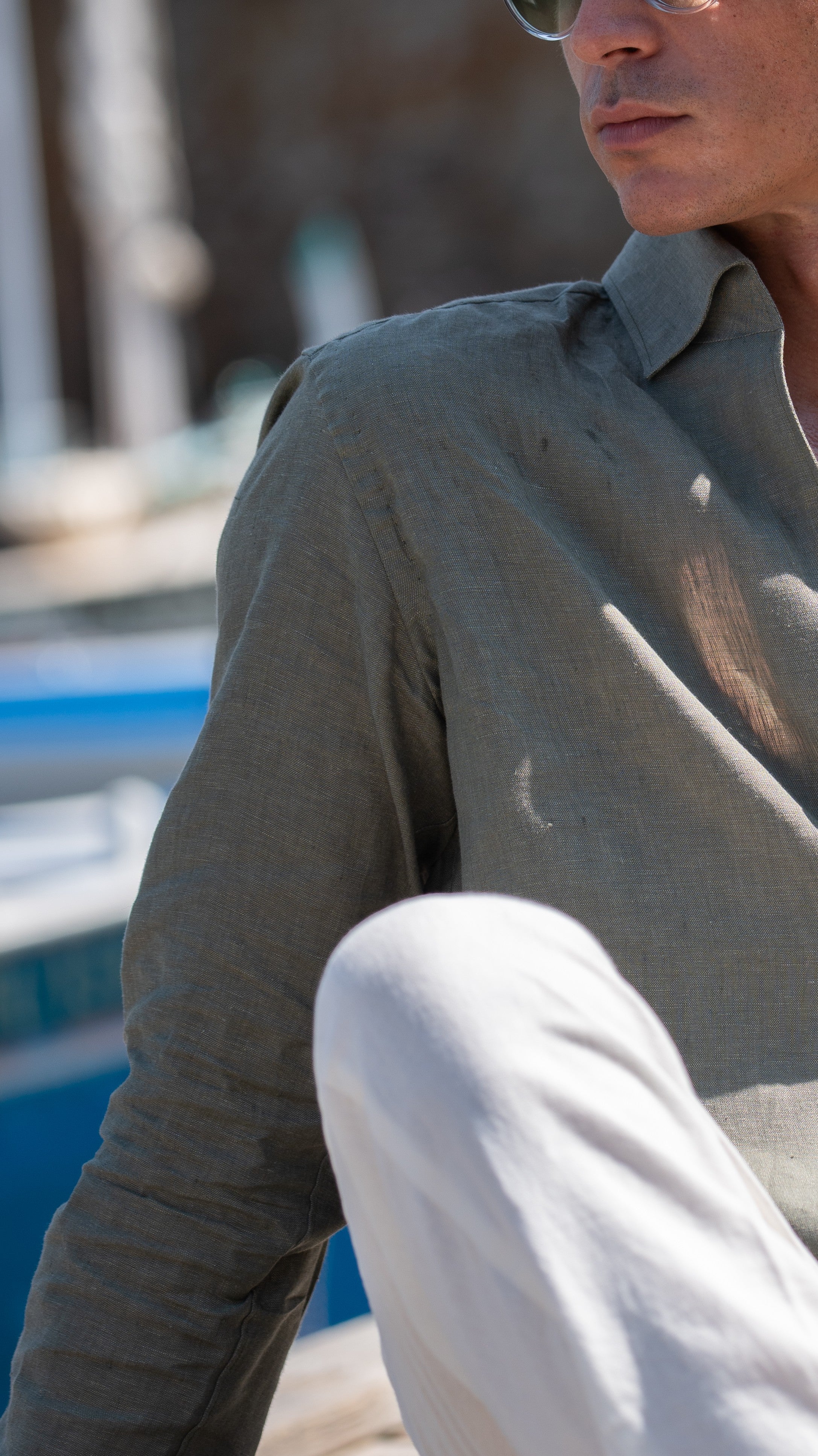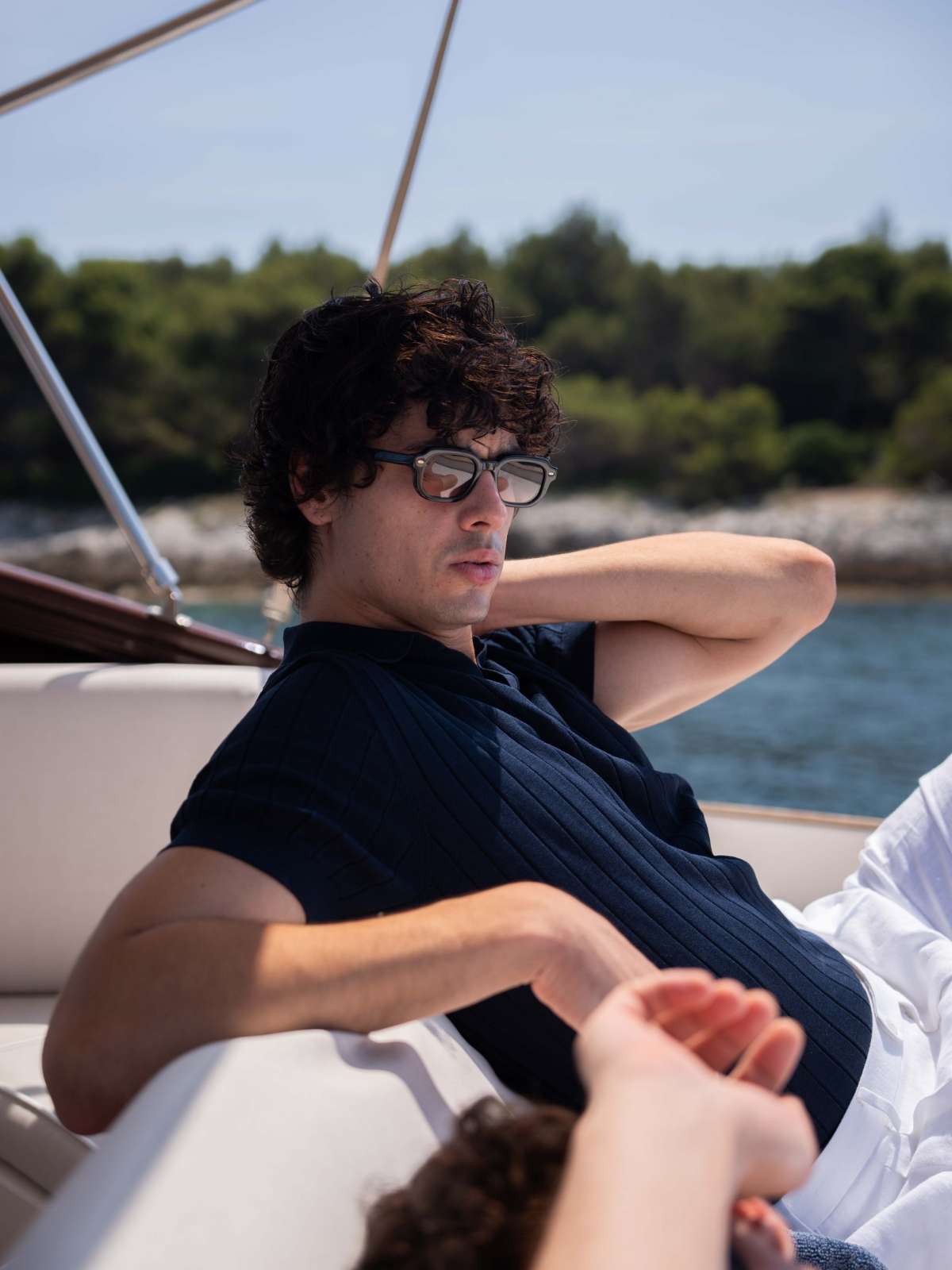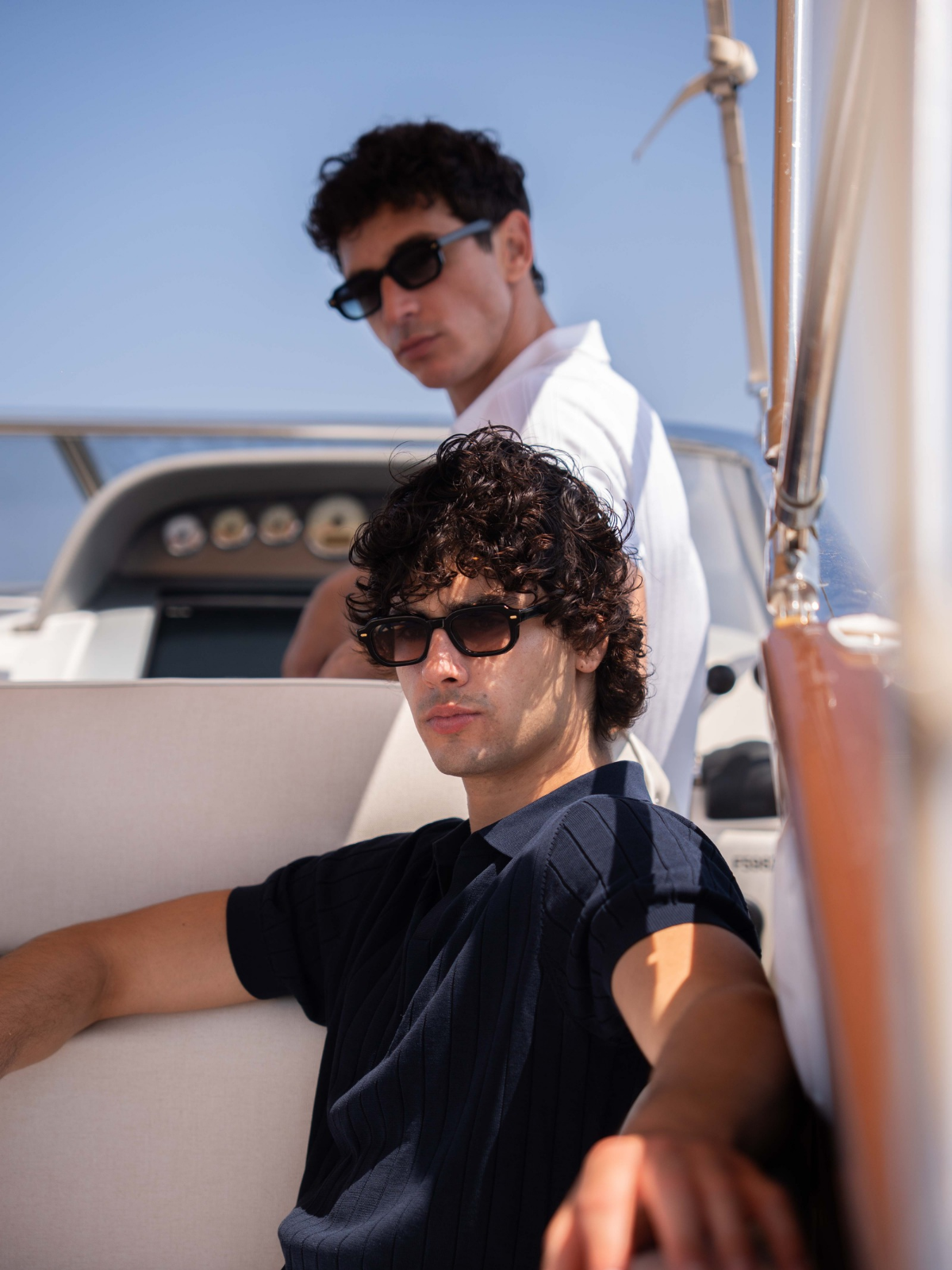 Where warm light runs fast across the water. Bold boat escapes meet salt-kissed pastels, our cotton-and-silk drop in motion, handmade in Naples shirts, and new sunwear built for speed.