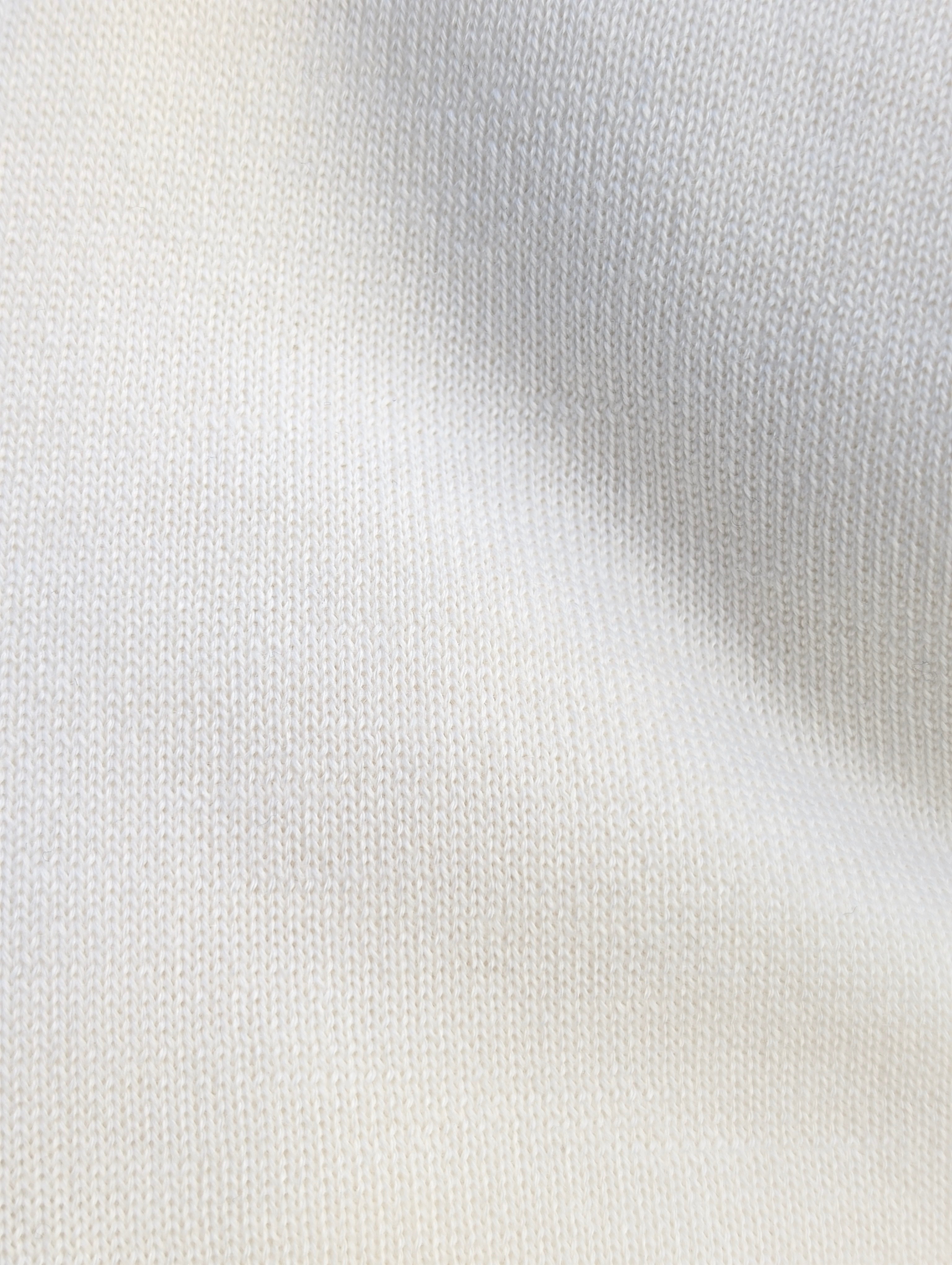 A minimalist long-sleeved polo, free of buttons and finished with ribbed edges. Woven in double-thread merino wool and silk, it offers softness, breathability, and a natural sheen.