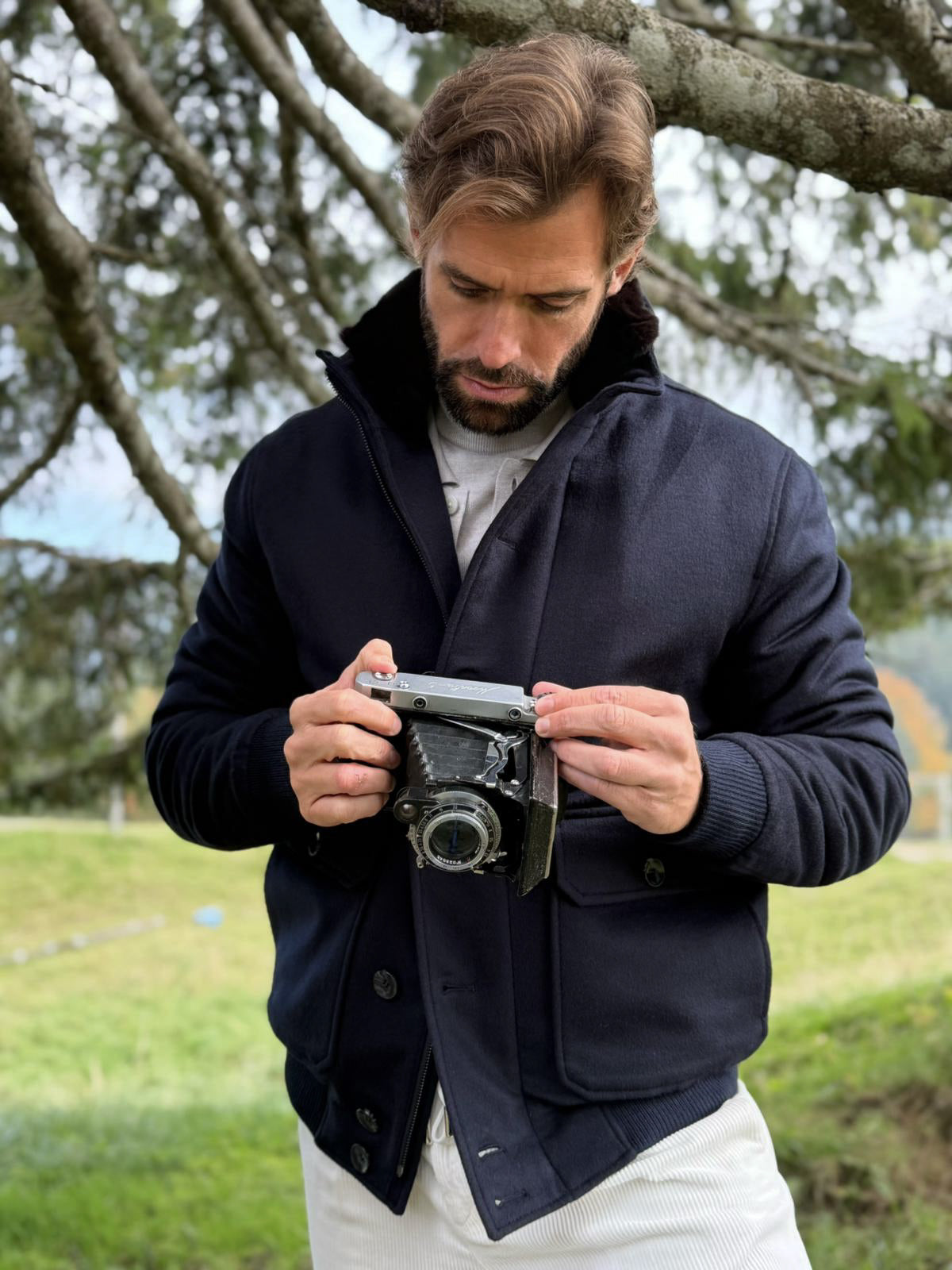 Each piece is shaped from warm, technical fabrics made to follow you through shifting light and cold air. The touch of wool, the glow of amber, the calm of the lake at dawn — a gentle armor for the first chill of the season.